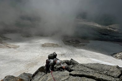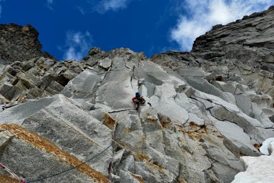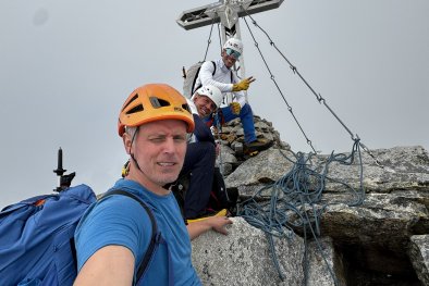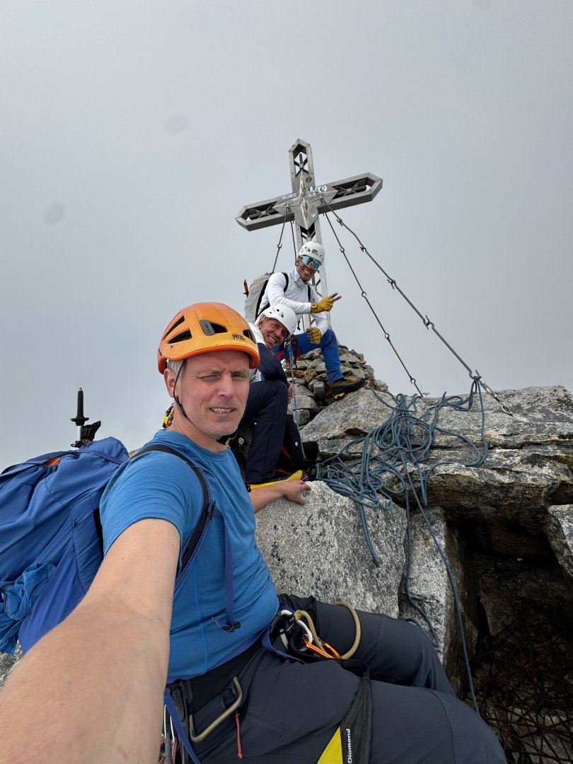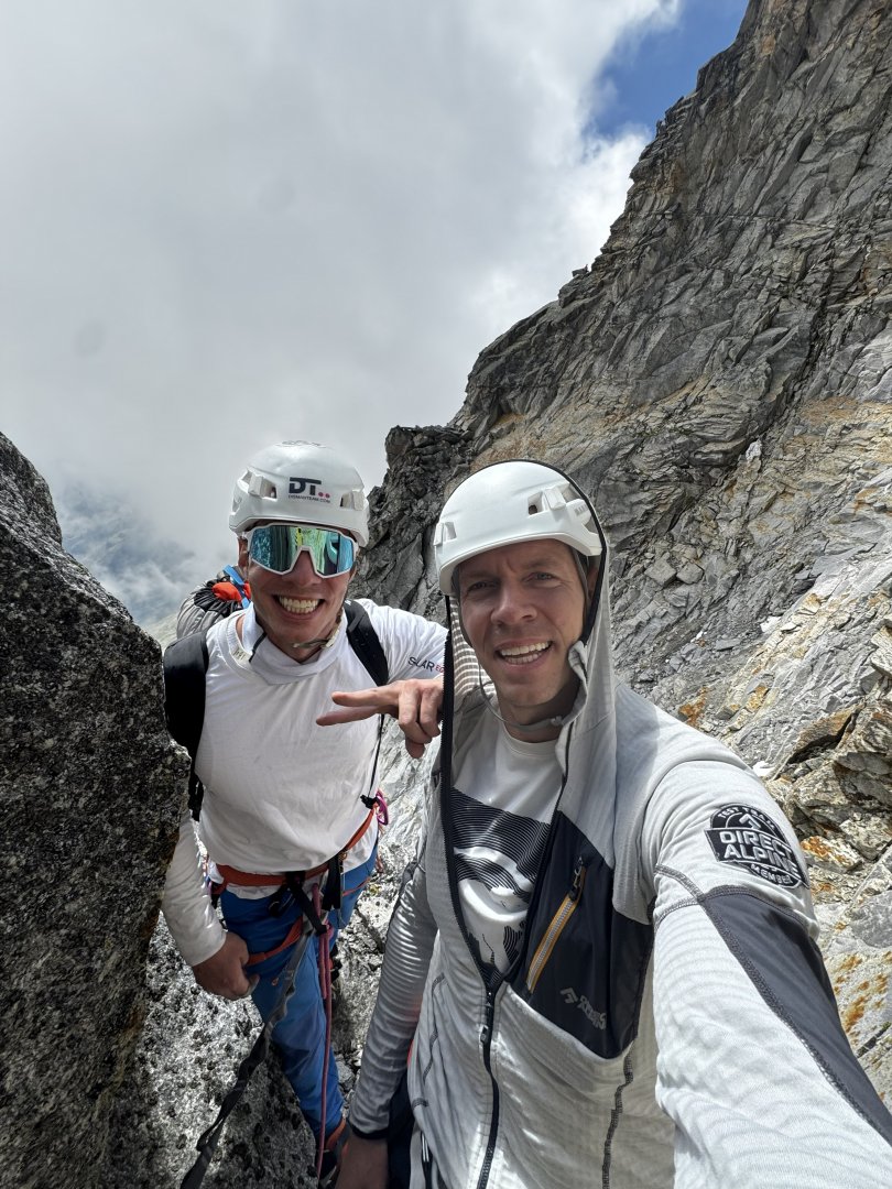 Kdy: srpen 2025 Cesta: Nově otevřená cesta: Kleiner Südpfeiler, 4+, 270 mKdo: Marek, Petr, Tomáš